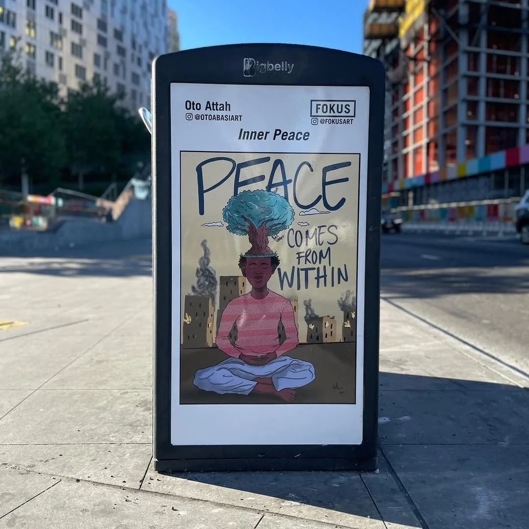 I created “Inner Peace” as part of the Daily Affirmations public art installation presented by FOKUS in 2022. The project places artworks in outdoor advertising spaces throughout Los Angeles, transforming everyday city infrastructure into moments of reflection and encouragement for people moving through the city.